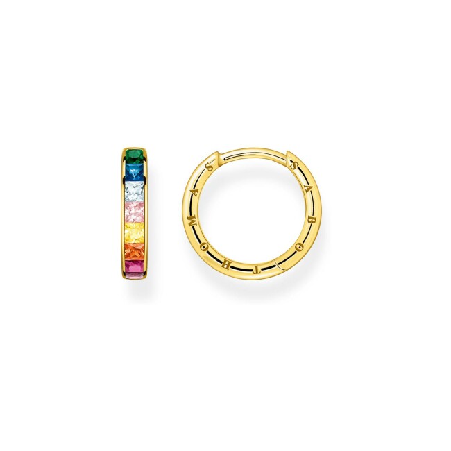 Sterling Silver Boucles d'oreilles créoles Thomas Sabo Sterling Silver en argent, or jaune, céramique, coridon, spinelle, pierres synthétiques et oxyde de zirconium